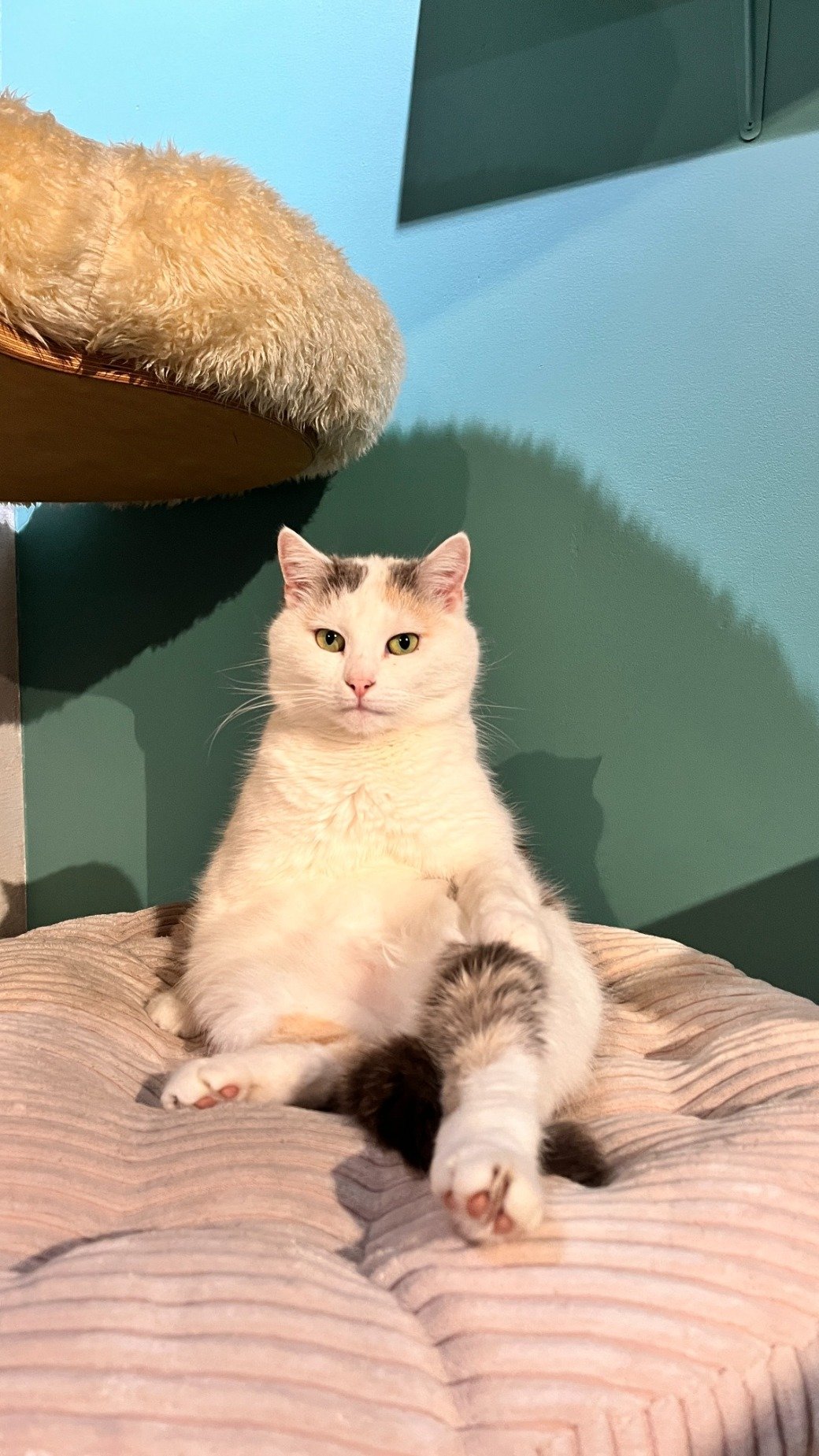 Hannah werd als kitten gevonden en zat de eerste drie jaar van haar leven bijna altijd in opvang, tot ze in april 2024 bij ons kwam wonen. Ze werd samen met (reeds geadopteerde) Shana gevonden en ze kwamen ook samen naar hier, maar vriendinnetjes bleken het niet te zijn. Naast het feit dat Hannah angstig was, hadden we niet veel info. We namen de uitdaging graag aan om te ontdekken wat ze allemaal in haar mars had.